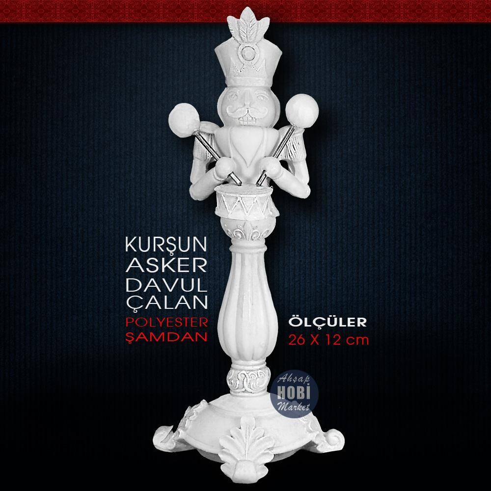 Kurşun Asker Şamdan Davul Çalan (26x12 cm) Ham Polyester