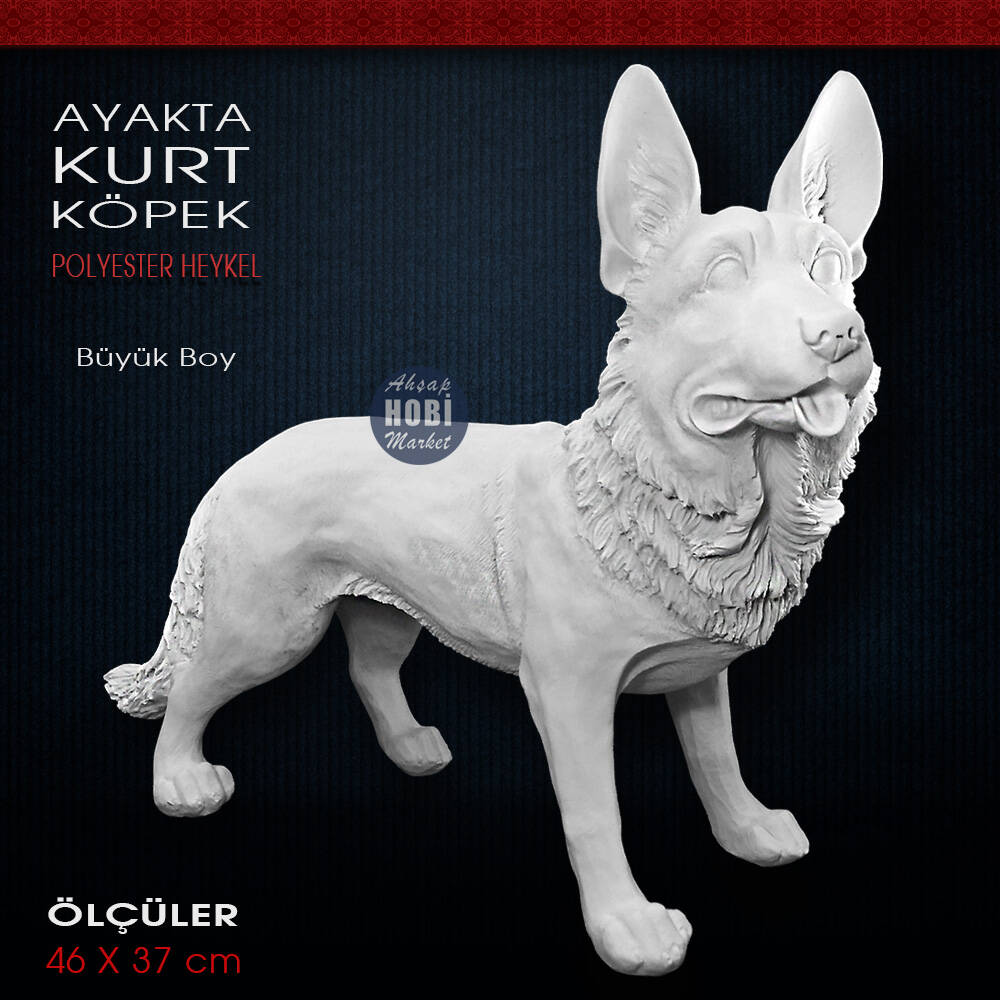 Kurt Köpek Heykeli Ayakta Model (46x37 cm) Ham Polyester