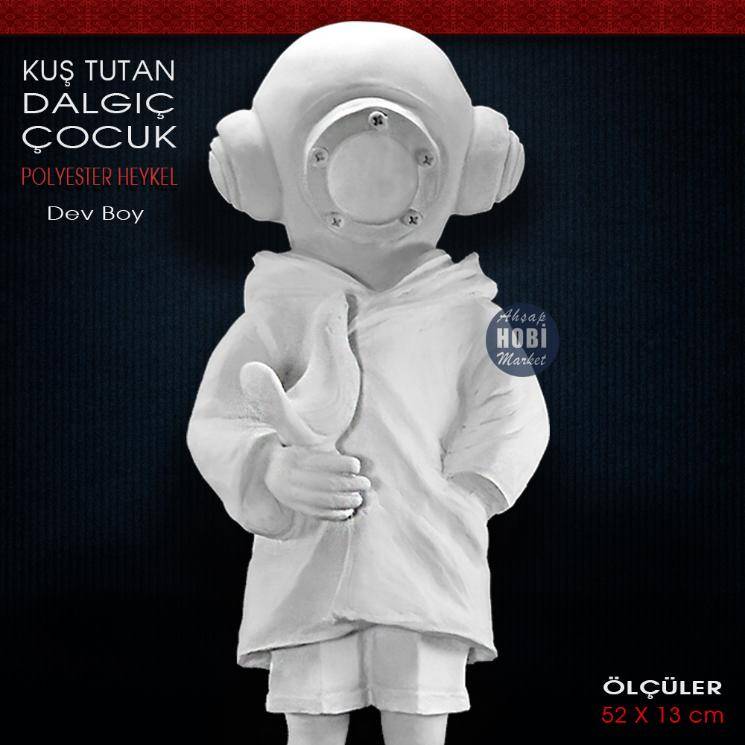 Kuş Tutan Dalgıç Çocuk Heykeli (52x13 cm) Ham Polyester