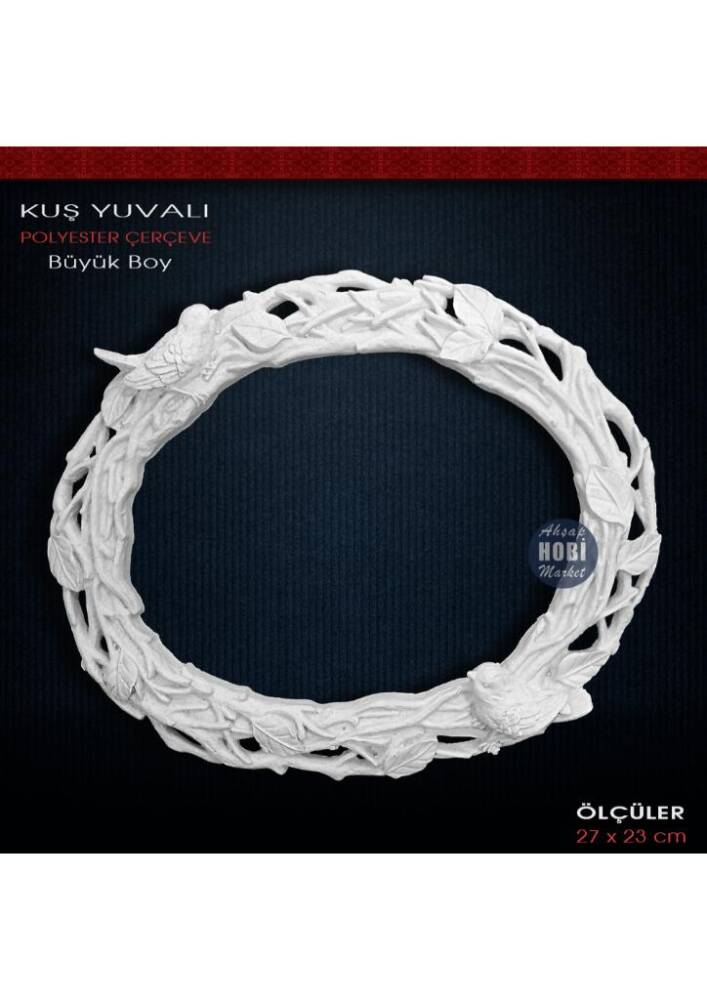 Kuş Yuvalı Çerçeve Büyük Boy (27X23cm) Ham Polyester