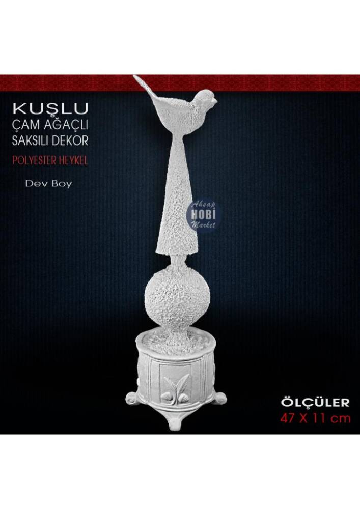 Kuşlu Çam Ağaçlı Saksılı Dekor Obje (47x11 cm) Ham Polyester