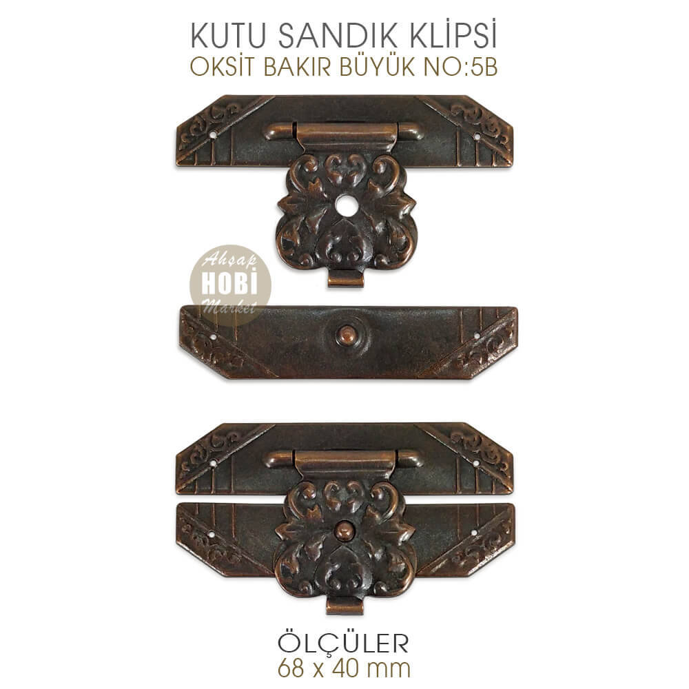 Gelince Haber VerKutu ve Sandık Klipsi No 5B Büyük Boy, her türlü düz kutu, tavla kutusu, sandık, okey kutusu, dekoratif ahşap boyama kutusu, tesbih kutusu, büyük arşiv kutusu gibi objelerde kullanabileceğiniz, vidalayarak kullanılabilen, uygulandığı objeye görkemli bir hava katarken, kutu kapağının da açılmasını engelleyen, fiziksel eskitme ile antik bakır rengi görünüm verilmiş bir metal klips aksesuardır.