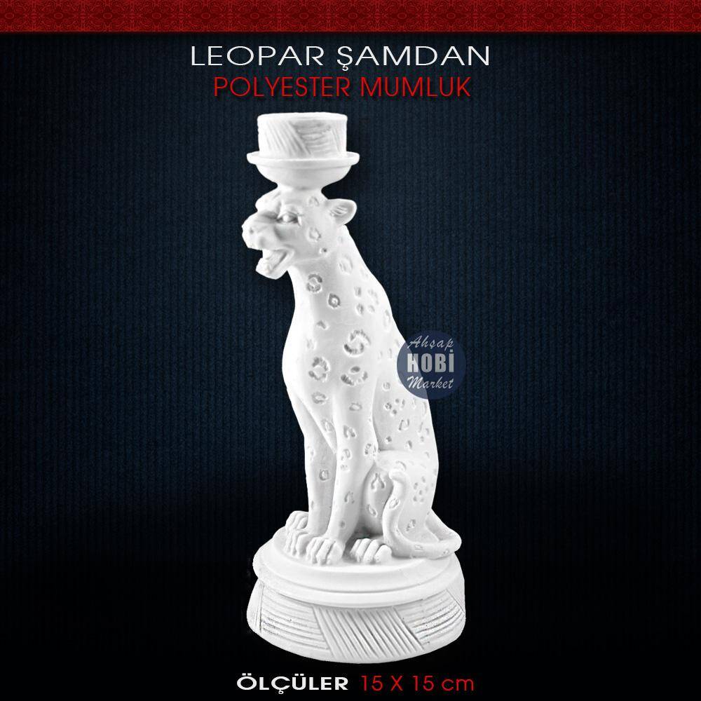 Leopar Şamdan Mumluk (23x12 cm) Ham Polyester