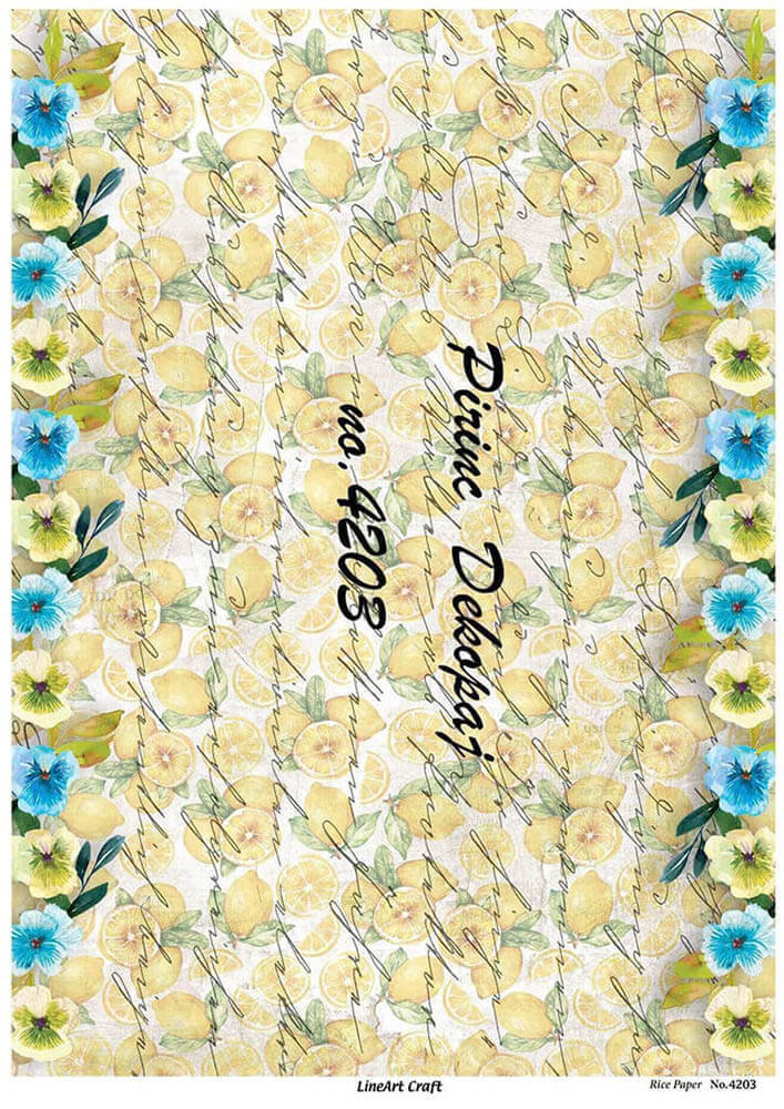 LineArt Limon Desenli Pirinç Dekopaj - Model : 4206 , pirinç çeltiğinden üretilmiş, her türlü hobi projesinde kullanılabilen, dekopaj tutkalı ile yapıştırılabilen, yapıştırıldığı yüzeyde hava kabarcığı bırakmayan, birinci kalite dekopaj kağıdıdır. Pirinç Dekopajların üzerleindeki desenler, kullanıldığı ürünün görkemli ve üst düzey gözükmesini sağlamaktadır.