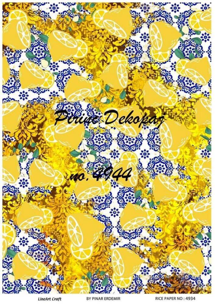LineArt Limon Desenli Pirinç Dekopaj, pirinç çeltiğinden üretilmiş, her türlü hobi projesinde kullanılabilen, dekopaj tutkalı ile yapıştırılabilen, yapıştırıldığı yüzeyde hava kabarcığı bırakmayan, birinci kalite dekopaj kağıdıdır. Pirinç Dekopajların üzerleindeki desenler, kullanıldığı ürünün görkemli ve üst düzey gözükmesini sağlamaktadır.