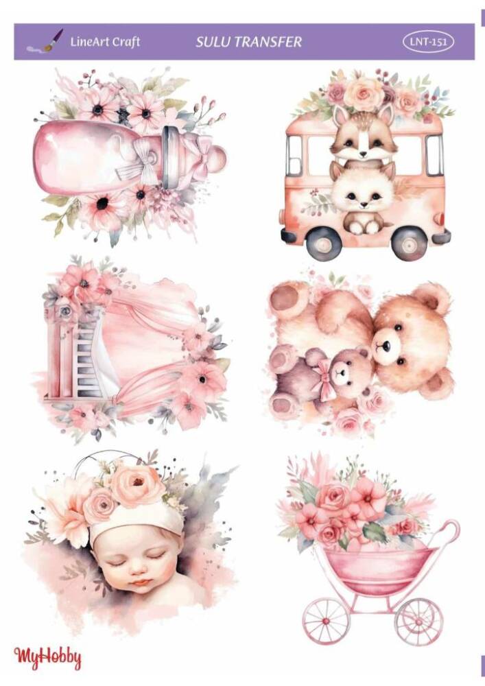 LineArt Ayı Bebek Desenli Sulu Transfer LNT151