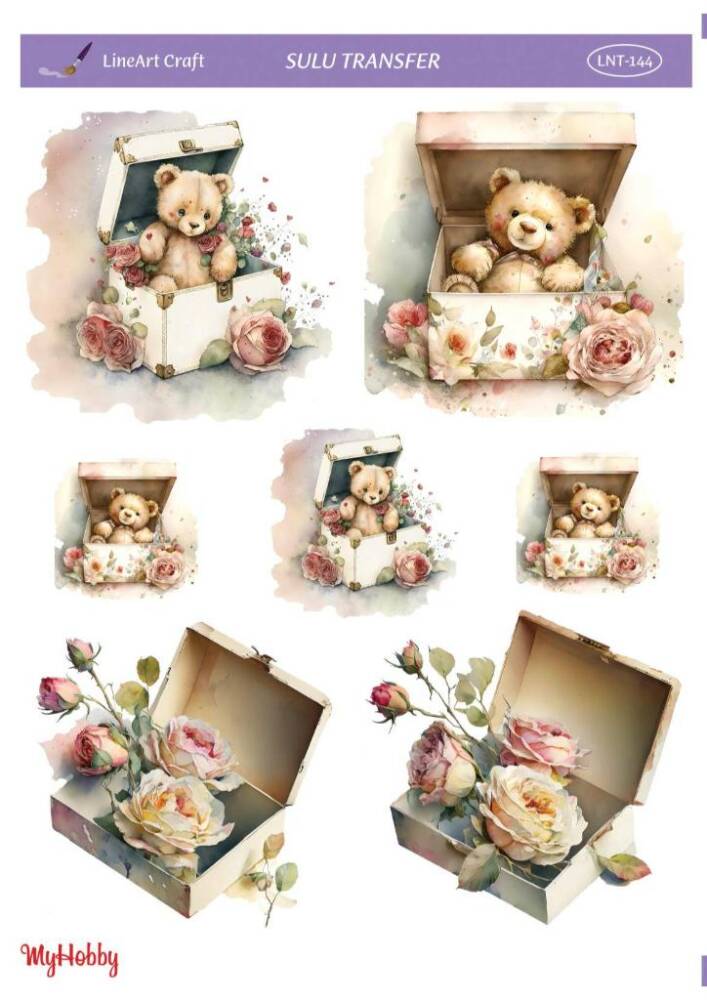 LineArt Ayı Gül Desenli Sulu Transfer LNT144