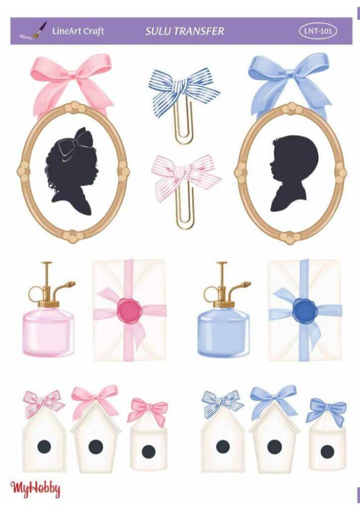 Sulu Transfer Kağıdı model LNT - 101 her türlü hobi projesinde kullanılabilen, kendinden yapışkanlı, yapıştırıldığı yüzeyde hava kabarcığı bırakmayan, birinci kalite transfer kağıdıdır. Transfer Kağıtlarının üzerlerindeki desenler, kullanıldığı ürünün görkemli ve üst düzey gözükmesini sağlamaktadır.