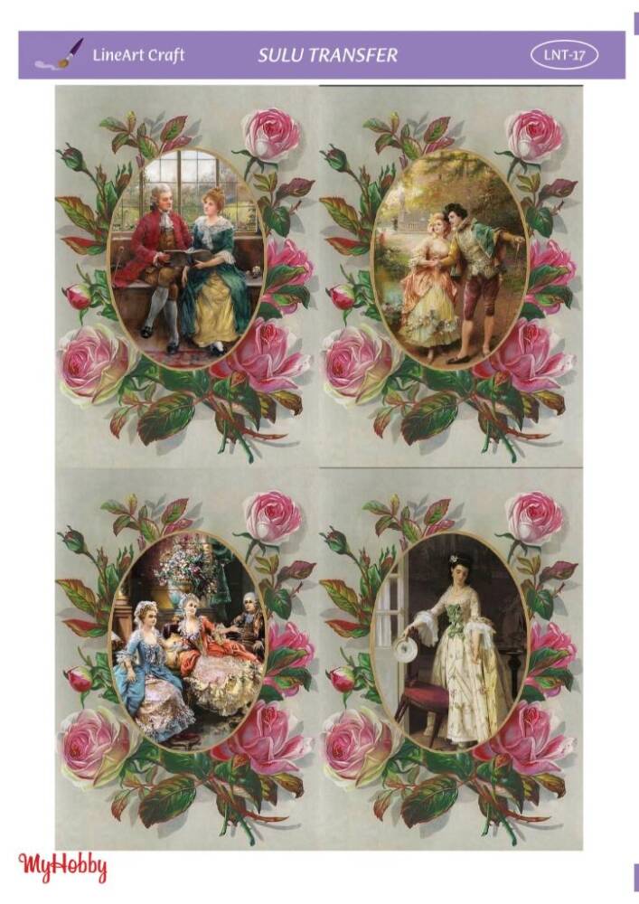 Sulu Transfer Kağıdı model LNT - 017 her türlü hobi projesinde kullanılabilen, kendinden yapışkanlı, yapıştırıldığı yüzeyde hava kabarcığı bırakmayan, birinci kalite transfer kağıdıdır. Transfer Kağıtlarının üzerlerindeki desenler, kullanıldığı ürünün görkemli ve üst düzey gözükmesini sağlamaktadır.