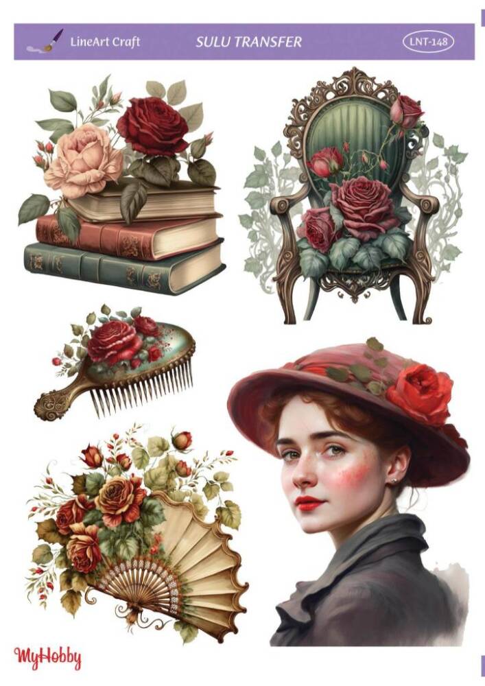 Sulu Transfer Kağıdı model LNT - 148 her türlü hobi projesinde kullanılabilen, kendinden yapışkanlı, yapıştırıldığı yüzeyde hava kabarcığı bırakmayan, birinci kalite transfer kağıdıdır. Transfer Kağıtlarının üzerlerindeki desenler, kullanıldığı ürünün görkemli ve üst düzey gözükmesini sağlamaktadır.
