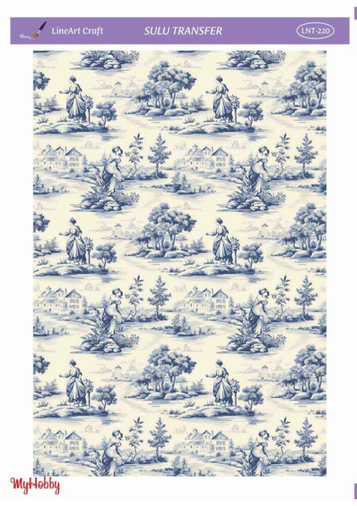 Sulu Transfer Kağıdı model LNT - 220 her türlü hobi projesinde kullanılabilen, kendinden yapışkanlı, yapıştırıldığı yüzeyde hava kabarcığı bırakmayan, birinci kalite transfer kağıdıdır. Transfer Kağıtlarının üzerlerindeki desenler, kullanıldığı ürünün görkemli ve üst düzey gözükmesini sağlamaktadır.