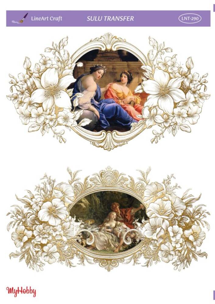 Sulu Transfer Kağıdı model LNT - 290 her türlü hobi projesinde kullanılabilen, kendinden yapışkanlı, yapıştırıldığı yüzeyde hava kabarcığı bırakmayan, birinci kalite transfer kağıdıdır. Transfer Kağıtlarının üzerlerindeki desenler, kullanıldığı ürünün görkemli ve üst düzey gözükmesini sağlamaktadır.