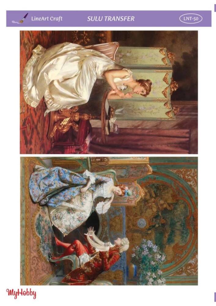 Sulu Transfer Kağıdı model LNT - 050 her türlü hobi projesinde kullanılabilen, kendinden yapışkanlı, yapıştırıldığı yüzeyde hava kabarcığı bırakmayan, birinci kalite transfer kağıdıdır. Transfer Kağıtlarının  üzerlerindeki  desenler, kullanıldığı ürünün görkemli ve üst düzey gözükmesini sağlamaktadır.