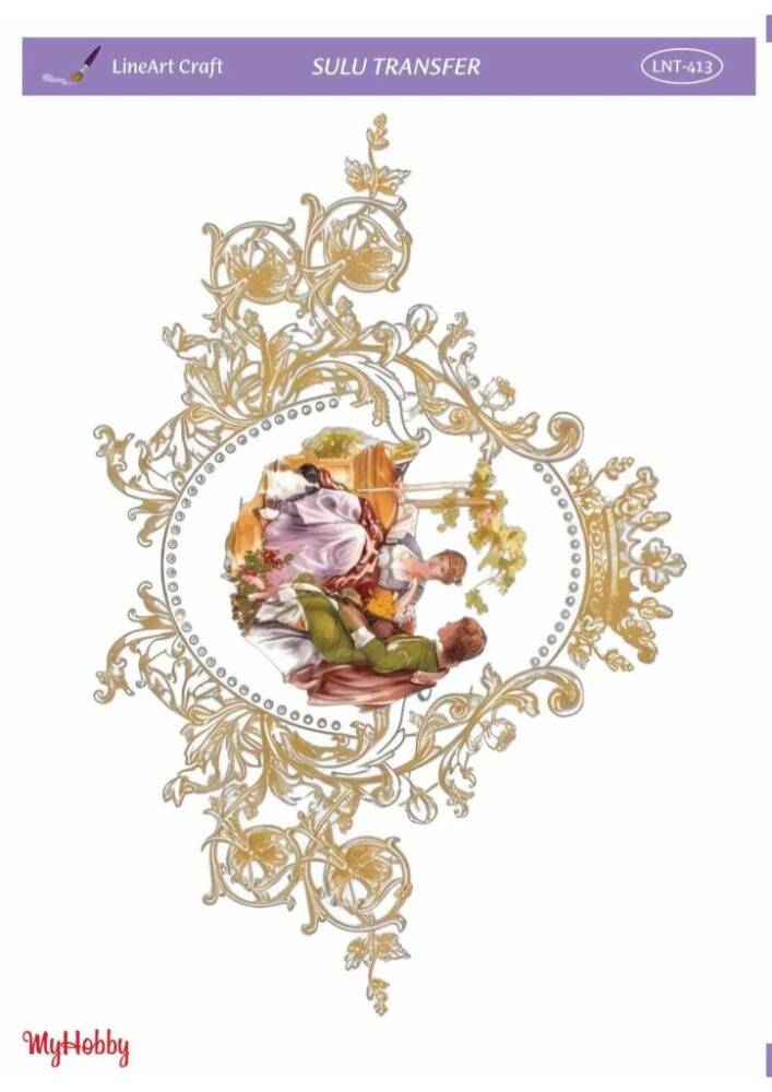Sulu Transfer Kağıdı model LNT - 413 her türlü hobi projesinde kullanılabilen, kendinden yapışkanlı, yapıştırıldığı yüzeyde hava kabarcığı bırakmayan, birinci kalite transfer kağıdıdır. Transfer Kağıtlarının üzerlerindeki desenler, kullanıldığı ürünün görkemli ve üst düzey gözükmesini sağlamaktadır.