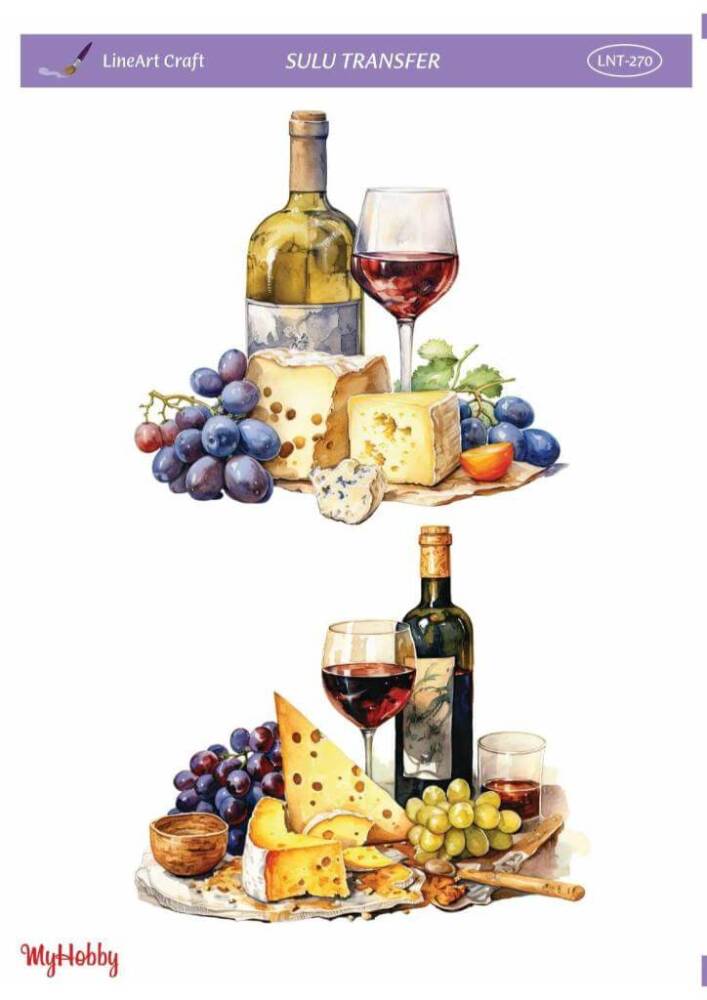 Sulu Transfer Kağıdı model LNT - 270 her türlü hobi projesinde kullanılabilen, kendinden yapışkanlı, yapıştırıldığı yüzeyde hava kabarcığı bırakmayan, birinci kalite transfer kağıdıdır. Transfer Kağıtlarının üzerlerindeki desenler, kullanıldığı ürünün görkemli ve üst düzey gözükmesini sağlamaktadır.