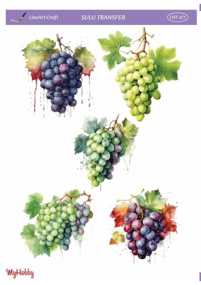 Sulu Transfer Kağıdı model LNT - 277 her türlü hobi projesinde kullanılabilen, kendinden yapışkanlı, yapıştırıldığı yüzeyde hava kabarcığı bırakmayan, birinci kalite transfer kağıdıdır. Transfer Kağıtlarının üzerlerindeki desenler, kullanıldığı ürünün görkemli ve üst düzey gözükmesini sağlamaktadır.