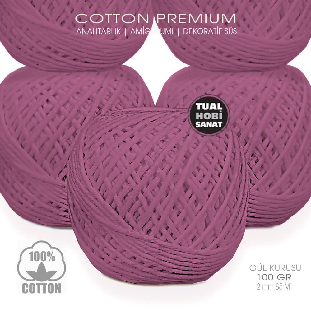 Cotton Premium Gül Karusu Renkli Pamuk İp 100gr 85mt 2mm