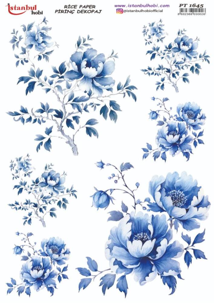 Mavi Çiçek Desenli Pirinç Dekopaj Model : PT 1645