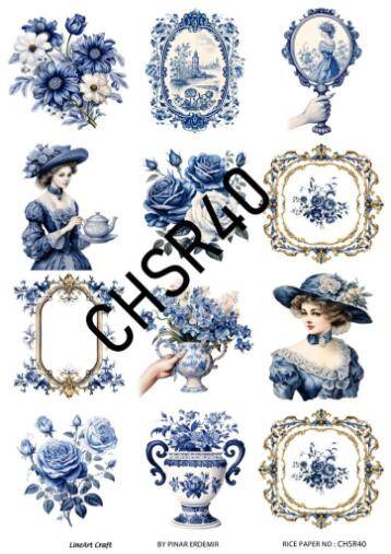 Mavi Gül ve Kadın Desenli Pirinç Dekopaj Model : CHSR40