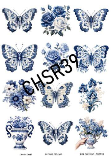Mavi Kelebek Desenli Pirinç Dekopaj Model : CHSR39