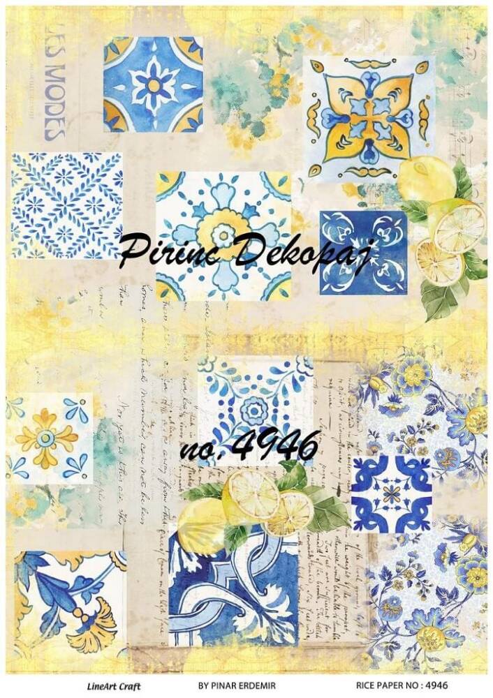 LineArt Mavi Limon Desenli Pirinç Dekopaj, pirinç çeltiğinden üretilmiş, her türlü hobi projesinde kullanılabilen, dekopaj tutkalı ile yapıştırılabilen, yapıştırıldığı yüzeyde hava kabarcığı bırakmayan, birinci kalite dekopaj kağıdıdır. Pirinç Dekopajların üzerleindeki desenler, kullanıldığı ürünün görkemli ve üst düzey gözükmesini sağlamaktadır.