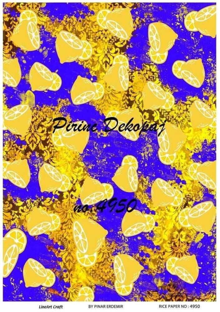 LineArt Mavi Limon Desenli Pirinç Dekopaj, pirinç çeltiğinden üretilmiş, her türlü hobi projesinde kullanılabilen, dekopaj tutkalı ile yapıştırılabilen, yapıştırıldığı yüzeyde hava kabarcığı bırakmayan, birinci kalite dekopaj kağıdıdır. Pirinç Dekopajların üzerleindeki desenler, kullanıldığı ürünün görkemli ve üst düzey gözükmesini sağlamaktadır.