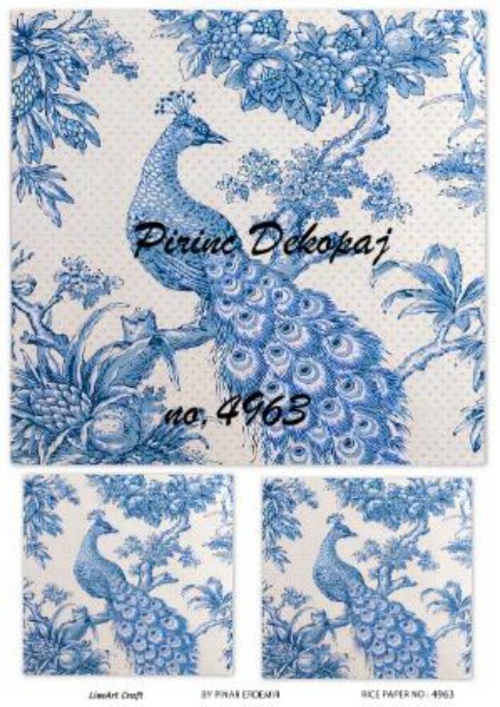 Mavi Tavus kuşu Desenli Pirinç Dekopaj Model : 4963
