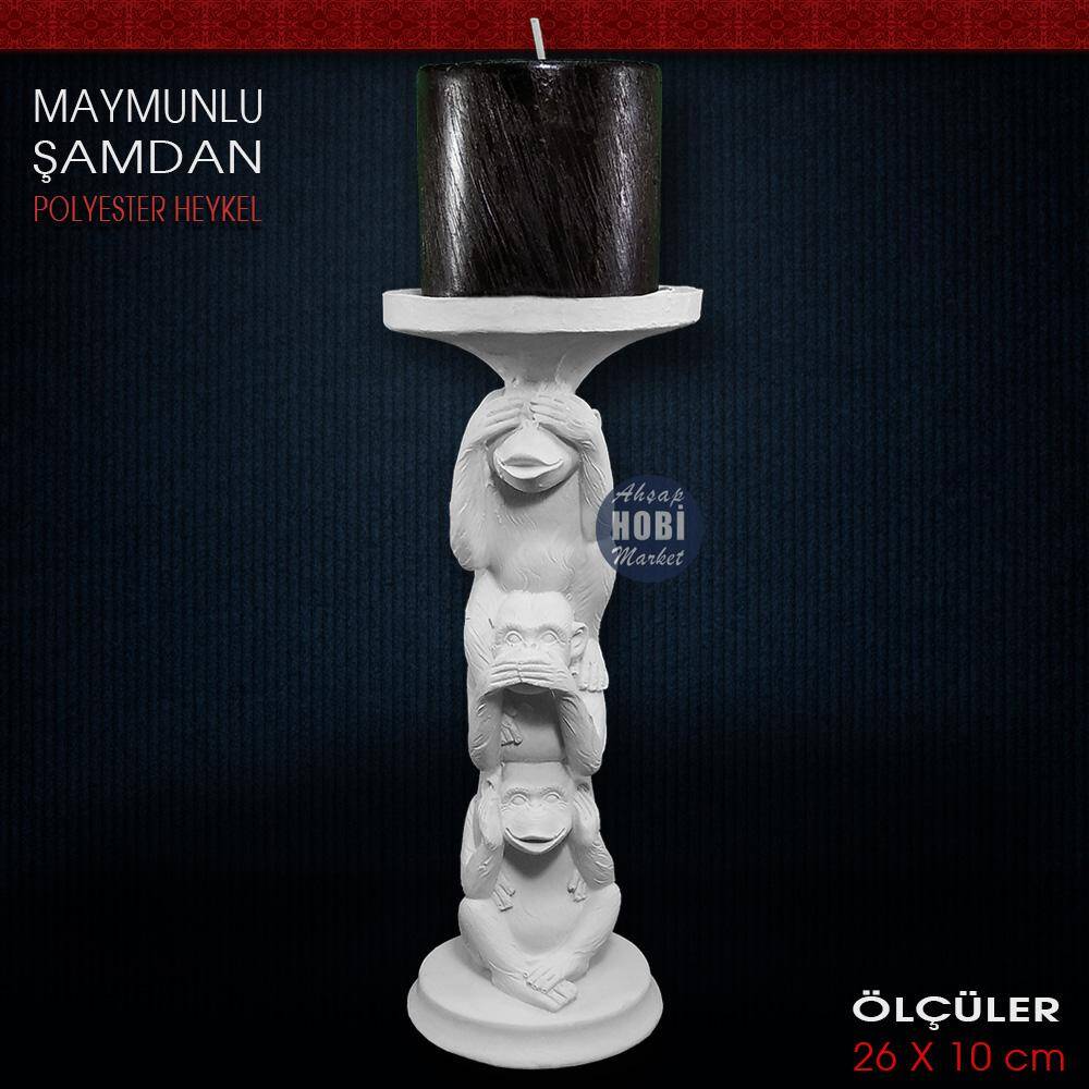 Maymunlu Şamdan Mumluk (26x10 cm) Ham Polyester