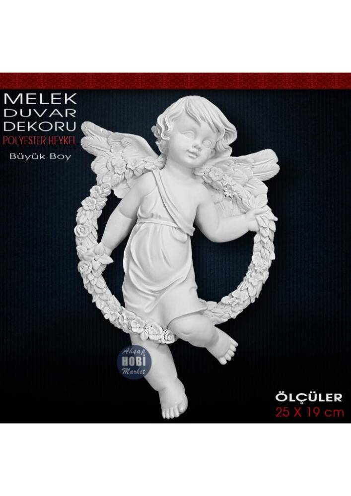Melek Duvar Dekoru Büyük Boy (25x19 cm) Ham Polyester