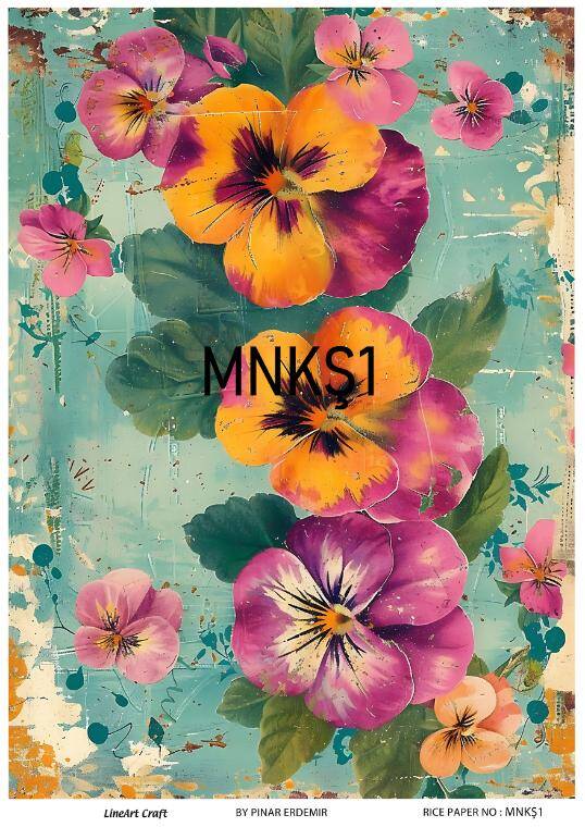 LineArt Menekşe Desenli Pirinç, Dekopaj pirinç, çeltiğinden üretilmiş, her tü,rlü, hobi projesinde kullanılabilen, dekopaj tutkalı ile yapıştırılabilen, yapıştırıldığı yü,zeyde hava kabarcığı bırakmayan, birinci kalite dekopaj kağıdıdır. Pirinç, Dekopajların ü,zerleindeki desenler, kullanıldığı ü,rü,nü,n gö,rkemli ve ü,st dü,zey gö,zü,kmesini sağlamaktadır.