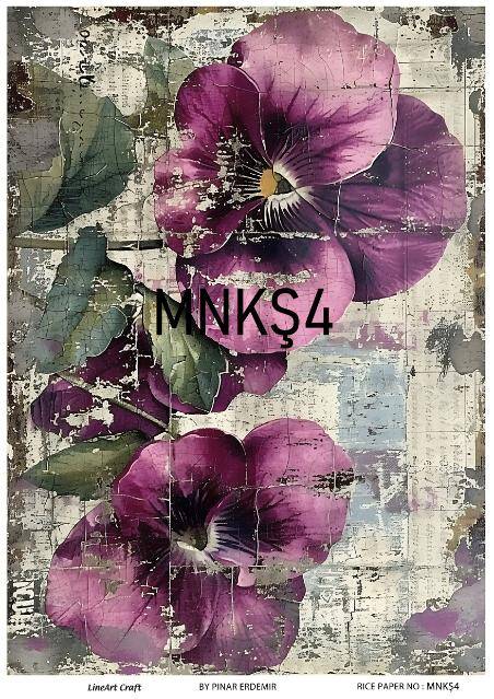 LineArt Menekşe Desenli Pirinç, Dekopaj pirinç, ç,eltiğinden üretilmiş, her tü,rlü, hobi projesinde kullanılabilen, dekopaj tutkalı ile yapıştırılabilen, yapıştırıldığı yü,zeyde hava kabarcığı bırakmayan, birinci kalite dekopaj kağıdıdır. Pirinç, Dekopajların ü,zerleindeki desenler, kullanıldığı ü,rü,nü,n gö,rkemli ve ü,st dü,zey gö,zü,kmesini sağlamaktadır.