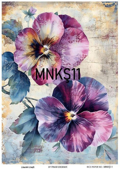 LineArt Menekşe Desenli Pirinç, Dekopaj pirinç, ç,eltiğinden üretilmiş, her tü,rlü, hobi projesinde kullanılabilen, dekopaj tutkalı ile yapıştırılabilen, yapıştırıldığı yü,zeyde hava kabarcığı bırakmayan, birinci kalite dekopaj kağıdıdır. Pirinç, Dekopajların ü,zerleindeki desenler, kullanıldığı ü,rü,nü,n gö,rkemli ve ü,st dü,zey gö,zü,kmesini sağlamaktadır.