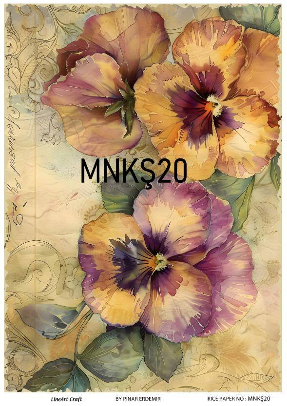 LineArt Menekşe Desenli Pirinç, Dekopaj pirinç, çeltiğinden ü,retilmiş, her tü,rlü, hobi projesinde kullanılabilen, dekopaj tutkalı ile yapıştırılabilen, yapıştırıldığı yü,zeyde hava kabarcığı bırakmayan, birinci kalite dekopaj kağıdıdır. Pirinç, Dekopajların ü,zerleindeki desenler, kullanıldığı ü,rü,nü,n gö,rkemli ve ü,st dü,zey gö,zü,kmesini sağlamaktadır.