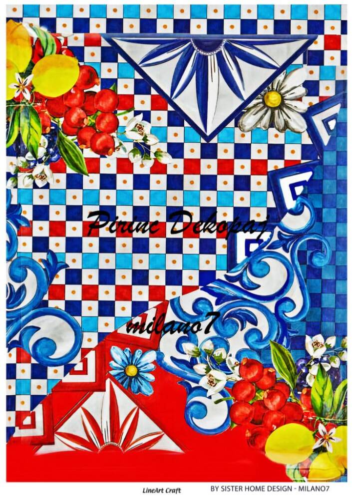 LineArt Karışık Desenli Pirinç Dekopaj - Model : milano07 , pirinç çeltiğinden üretilmiş, her türlü hobi projesinde kullanılabilen, dekopaj tutkalı ile yapıştırılabilen, yapıştırıldığı yüzeyde hava kabarcığı bırakmayan, birinci kalite dekopaj kağıdıdır. Pirinç Dekopajların üzerleindeki desenler, kullanıldığı ürünün görkemli ve üst düzey gözükmesini sağlamaktadır.