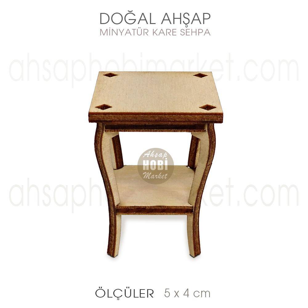 Ahşap Minyatür Kare Sehpa, 3mm kaliteli kavak ağacı kontradan üretilmiş, barbie oyun evlerinde, oyuncak olarak veya dekoratif maket uygulamalarında kullanılan, ithal plastik ürünlerin aksine doğal ahşaptan imal edilen, çocukların çok seveceği ve oynamaktan sıkılmayacağı, ev eşyası maketleridir. Su bazlı olan ve olmayan, akrilik ve sentetik her türlü boya ve verniğe uygun, uzun ömürlü ve dayanıklı objelerdir. Minyatür eşyalar çocuklar tarafından kullanılacak ise su bazlı akrilik boyaları tercih ediniz.