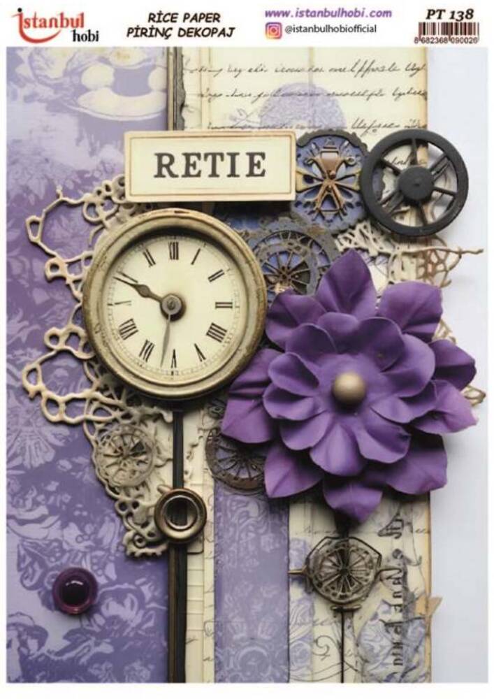 Mor Ç,iç,ek Desenli Pirinç, Dekopaj - Model : PT 00138 , pirinç, ç,eltiğinden ü,retilmiş, her tü,rlü, hobi projesinde kullanılabilen, dekopaj tutkalı ile yapıştırılabilen, yapıştırıldığı yü,zeyde hava kabarcığı bırakmayan, birinci kalite dekopaj kağıdıdır. Pirinç, Dekopajların ü,zerleindeki desenler, kullanıldığı ü,rü,nü,n gö,rkemli ve ü,st dü,zey gö,zü,kmesini sağlamaktadır.