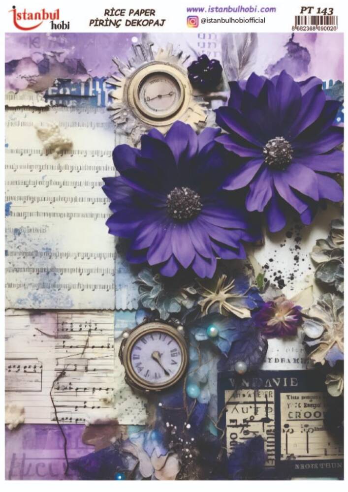 Mor Ç,iç,ek Desenli Pirinç, Dekopaj - Model : PT 00143 , pirinç, ç,eltiğinden ü,retilmiş, her tü,rlü, hobi projesinde kullanılabilen, dekopaj tutkalı ile yapıştırılabilen, yapıştırıldığı yü,zeyde hava kabarcığı bırakmayan, birinci kalite dekopaj kağıdıdır. Pirinç, Dekopajların ü,zerleindeki desenler, kullanıldığı ü,rü,nü,n gö,rkemli ve ü,st dü,zey gö,zü,kmesini sağlamaktadır.