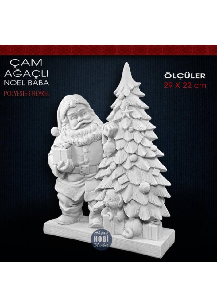 Noel Baba Heykeli Çam Ağaçlı (29x22 cm) Ham Polyester