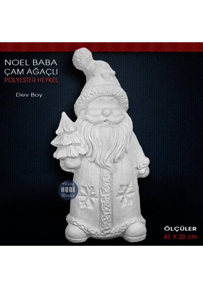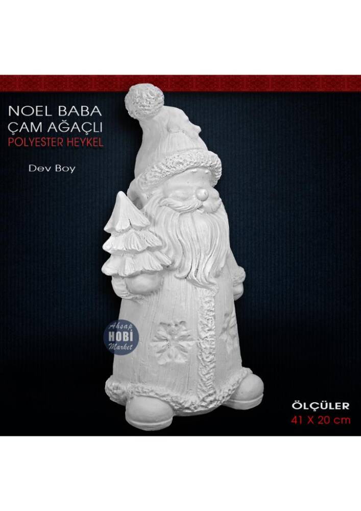 Noel Baba Heykeli Çam Ağaçlı Büyük (41x20 cm) Ham Polyester