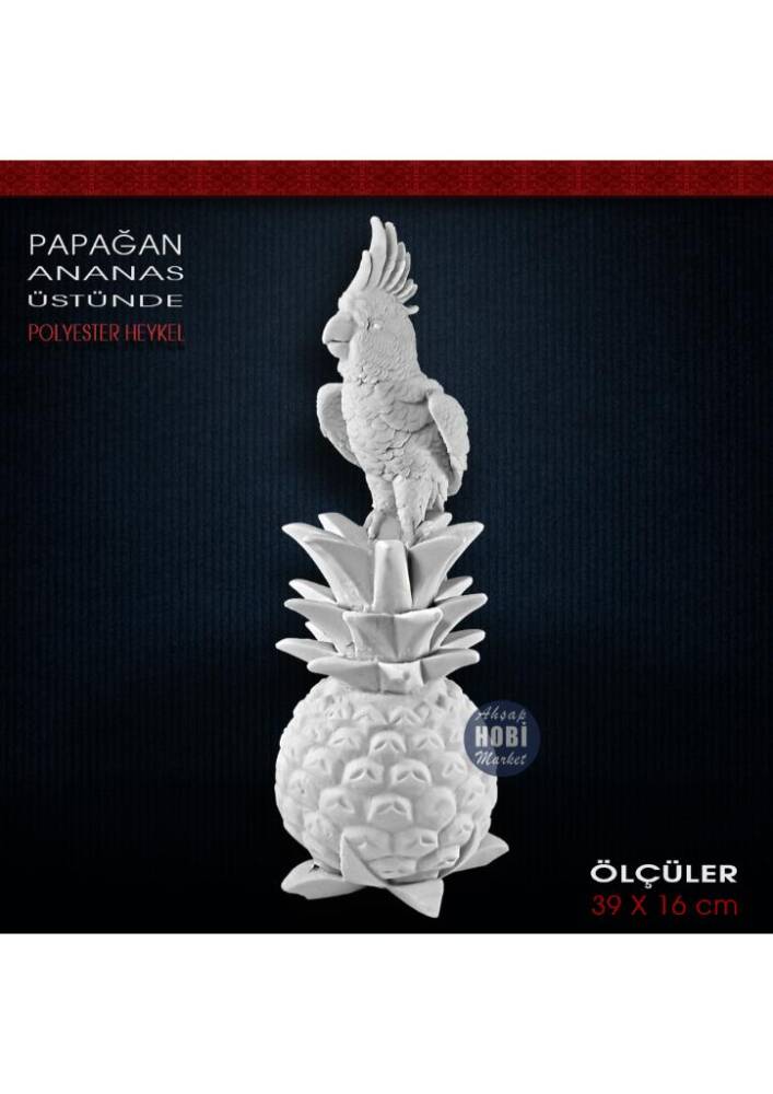 Papağan Biblo Heykel Ananas Üstünde (39x16 cm) Ham Polyester