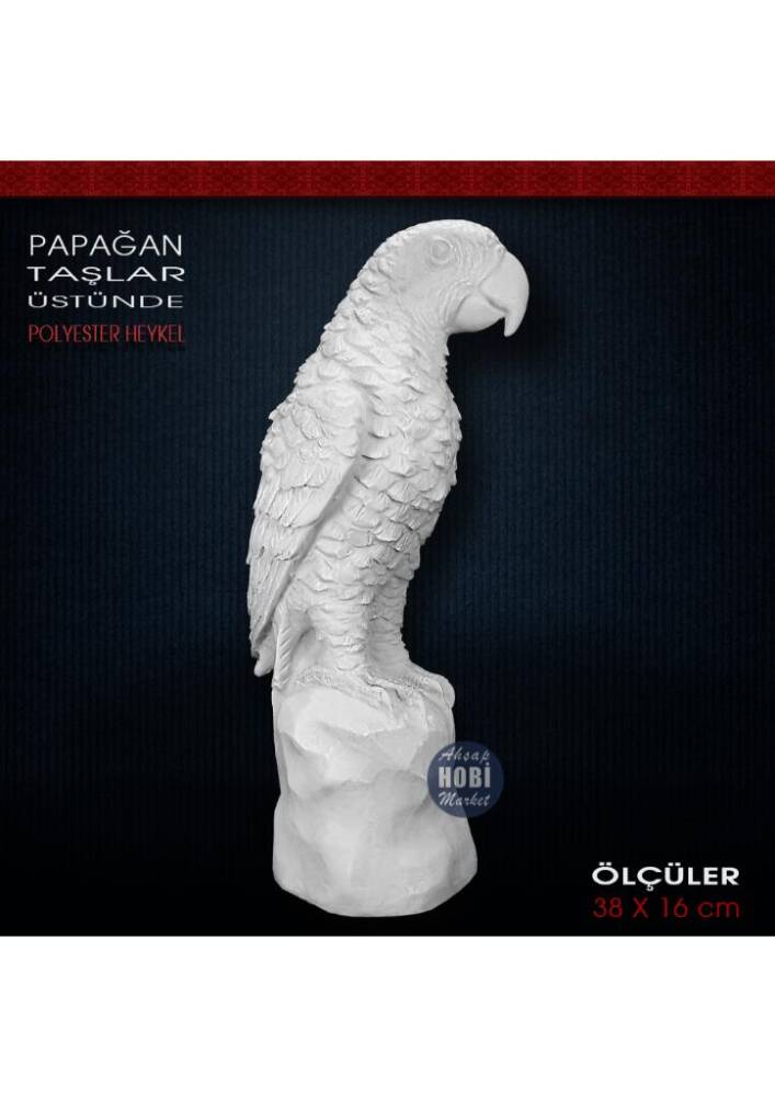 Papağan Biblo Heykel Taş Üstünde (38x16 cm) Ham Polyester