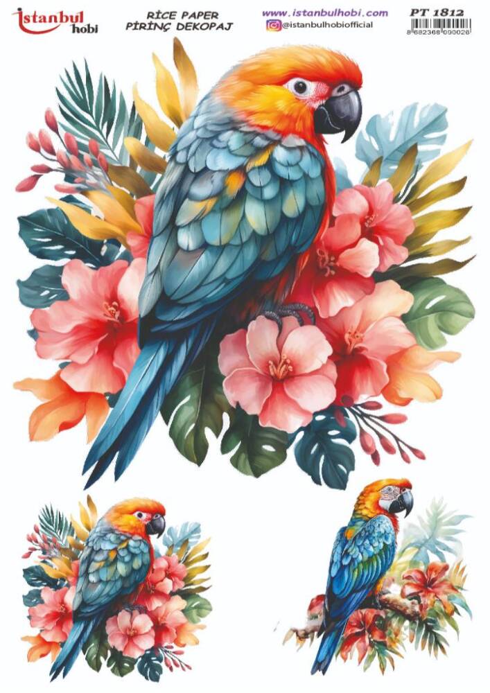 Papağan Çiçek Desenli Pirinç Dekopaj Model : PT 1812