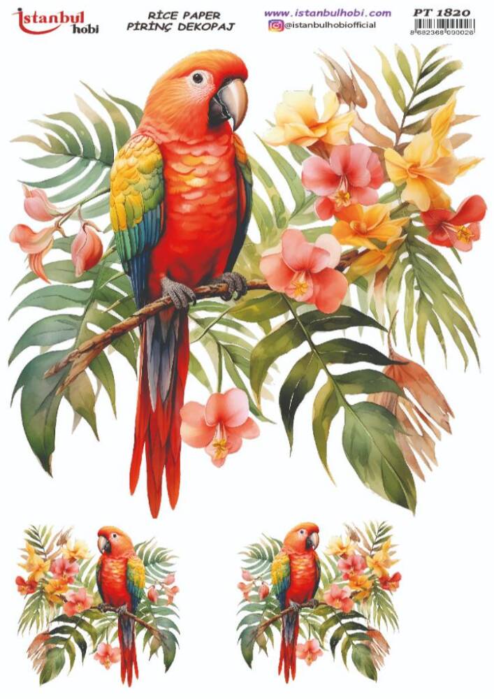 Papağan Çiçek Desenli Pirinç Dekopaj Model : PT 1820