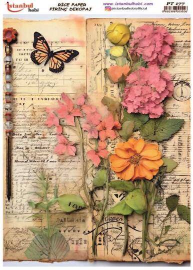 Gelince Haber VerPembe Çiçek Desenli Pirinç, Dekopaj - Model : PT 00177 Boyut (30x42cm)