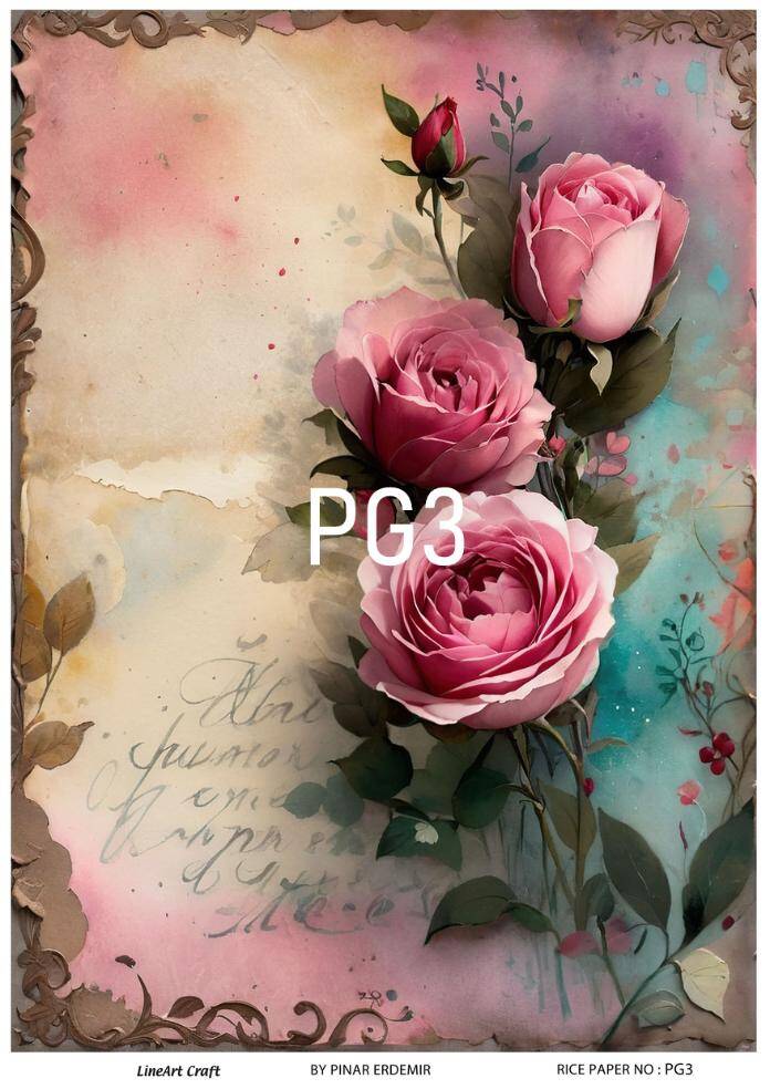Gelince Haber VerLineArt Pembe Gül Desenli Pirinç, Dekopaj - Model : PG003 Boyut (30x42cm)