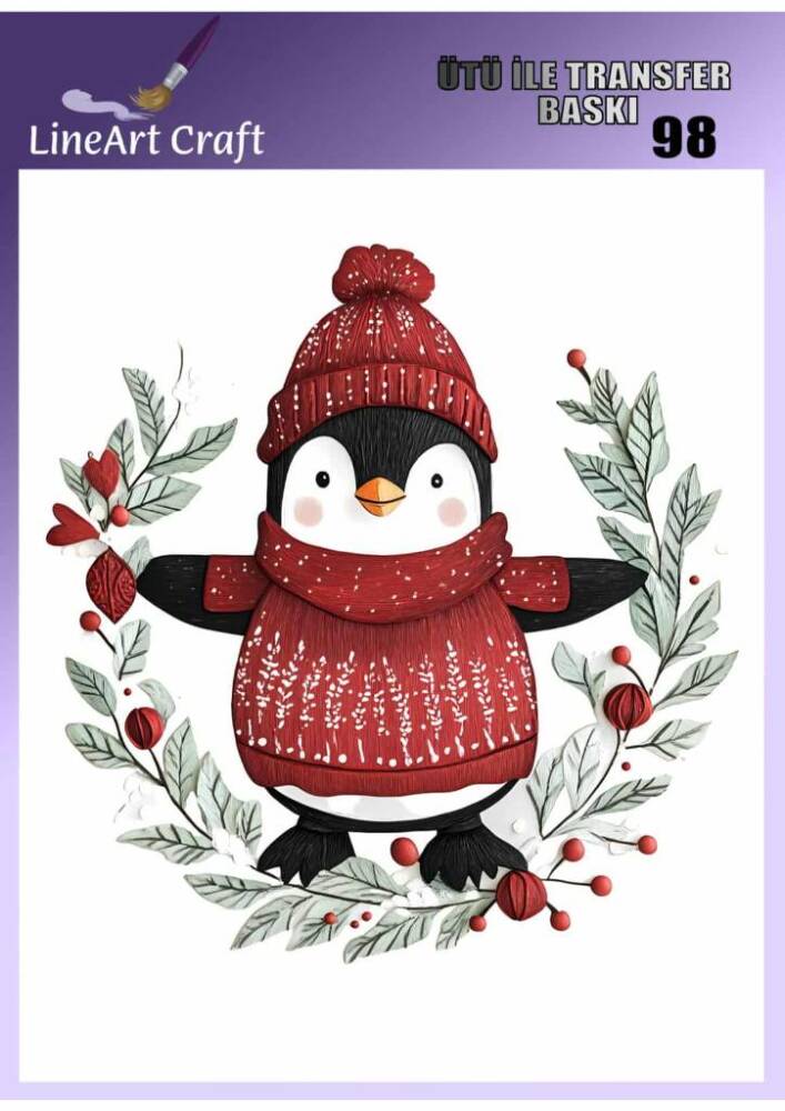 Penguen Desenli Kumaş Transfer Kağıdı LNT-K098 (20x20 cm)