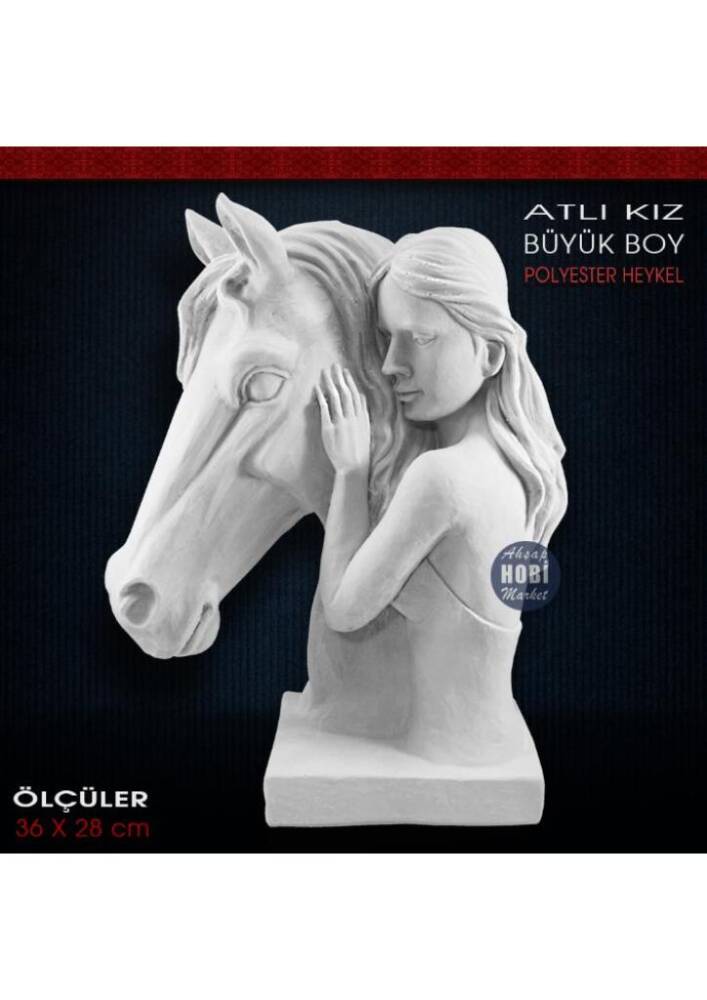 Polyester Atlı Kız Heykeli Büyük Boy (36x28 cm)