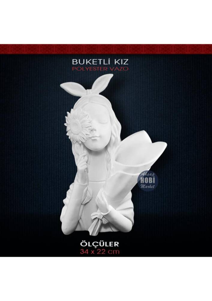 Polyester Buketli Kız Vazo **YENİ MODEL (34x22cm)