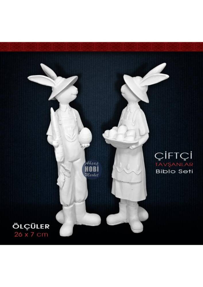 Polyester Çiftçi Tavşanlar Biblo Seti (2 Parça)