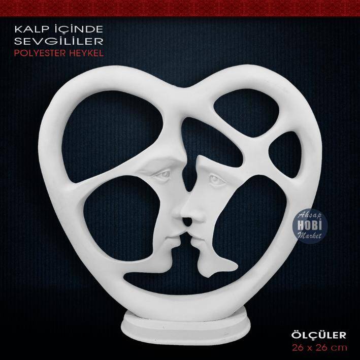 Polyester Kalp İçinde Sevgililer Biblo (26x26cm)